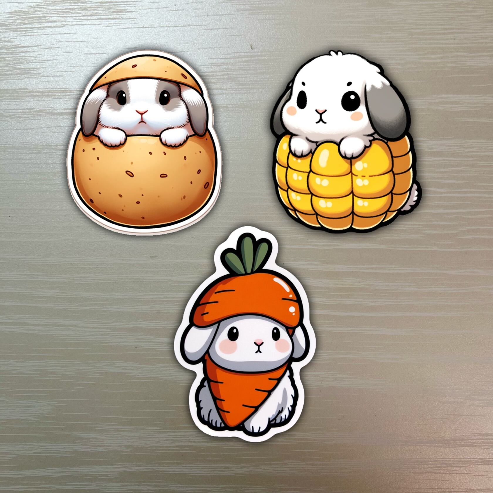 【ベジうさぎシリーズ】ステッカー オリジナルデザイン 3種セット