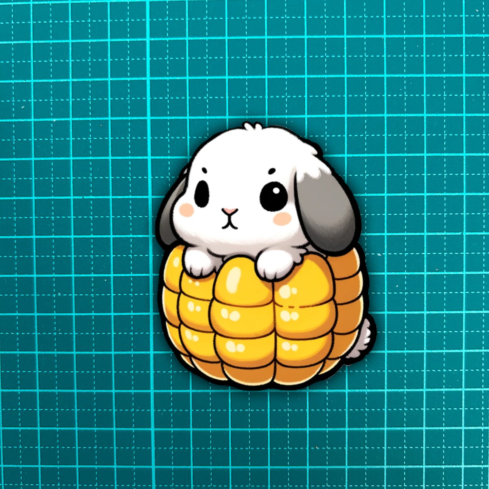 かわいらしいホーランドロップうさぎの野菜と融合したデザインのステッカーです。
